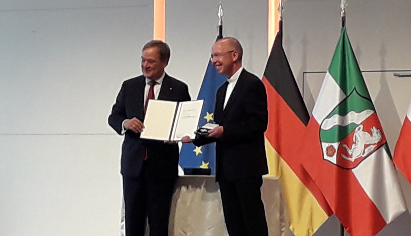 Pfarrer Peter Kossen (rechts) wurde am 23. August von Ministerpräsident Armin Laschet mit dem NRW-Landesverdienstorden ausgezeichnet.