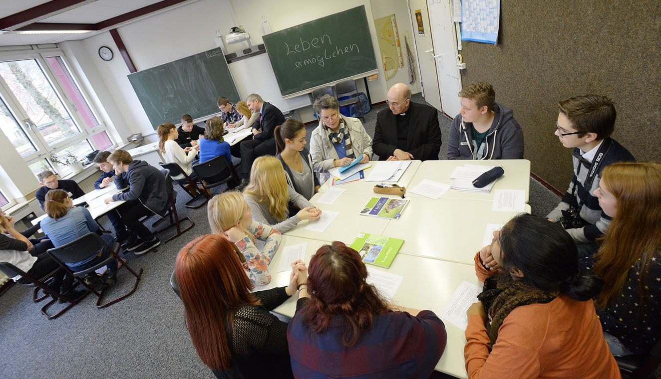 Bildunterschrift: Bischof Dr. Felix Genn bei einem Schulbesuch im Bistum Münster.