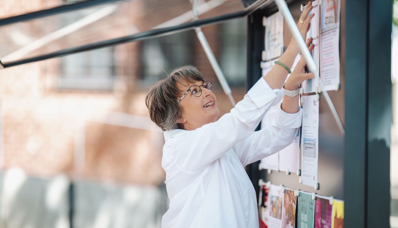 Dafür zu sorgen, dass die Informationen im Schaukasten aktuell sind, ist nur eine von vielen Aufgaben, die Sabine Schenzer erledigt.