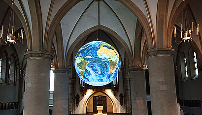 Große Erdkugel schwebt im Gewölbe von St. Peter Recklinghausen