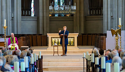 Prof. Veronika Grimm sprach bei den "Domgedanken" über die strukturellen Herausforderungen der deutschen Wirtschaft und die Notwendigkeit von Reformen. Ihr Vortrag setzte den Schlusspunkt der Reihe.