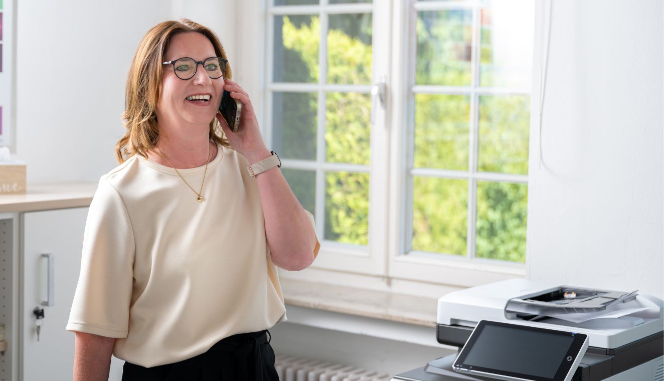 Verbundleiterin Anja Andresen aus Harsewinkel beteiligt sich mit ihrem „persönlichen Büroassistenzhund“ an Arbeitgeberkampagne der katholischen Kirche im Bistum Münster.