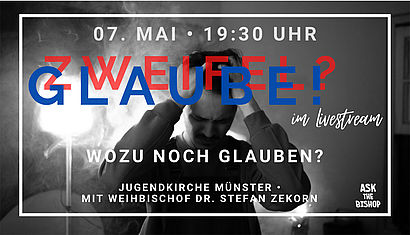 „Wozu soll ich noch glauben?“ Diese Frage steht über dem nächsten „Ask the bishop“-Abend am Freitag, 7. Mai, ab 19.30 Uhr. Erstmals steht Weihbischof Dr. Stefan Zekorn den Jugendlichen per Livestream Rede und Antwort.