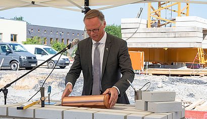 „Tita-Cory-Campus“ heißt der Studierendencampus, den das Bischöfliche Studierendenwerk mit dem Bistum Münster und der Stadt Münster errichtet. Generalvikar Winterkamp segnete am 23. Juni den Grundstein.