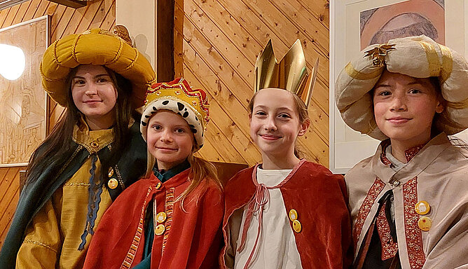 Die vier Sternsingerinnen Mia (14), Theresa (13), Pia (10) und Anna aus der Pfarrei St. Franziskus in Marl werden am Donnerstag, 1. Januar, um 10 Uhr den Neujahrsgottesdienst mit Papst Leo XIV. im…
